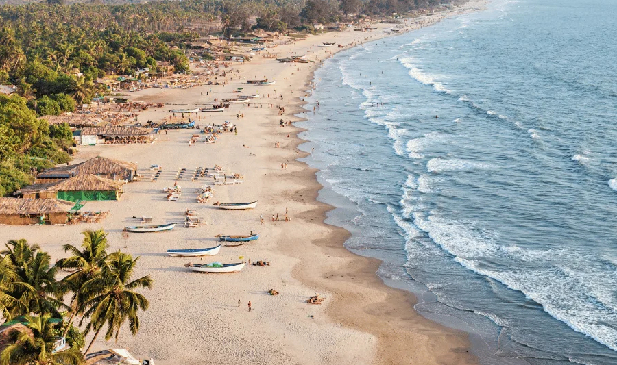 Cavelossim Beach is located in South Goa, at the end of a narrow peninsula that is surrounded by water on three sides: the Arabian Sea, the river Sal, and a lagoon. This unique location gives Cavelossim Beach a secluded and peaceful vibe, away from the crowds and noise of other popular beaches.